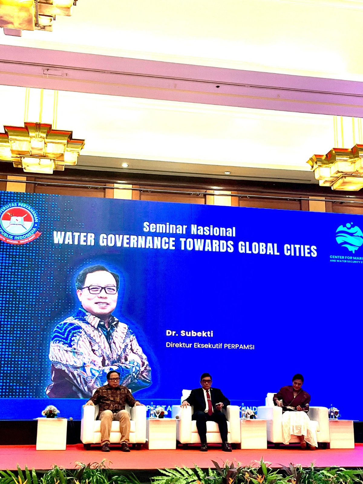 Hal ini disampaikan Subekti saat menjadi pembicara dalam Seminar Nasional “Water Governance Toward Global Cities” yang digelar Universitas Pertahanan (Unhan) di Hotel Borobudur Jakarta, Selasa (30/9/25). Turut hadir, Sekretaris Umum PERPAMSI, Rino Indira Gusniawan. Acara dibuka oleh Gubernur DKI Jakarta, Dr. Pramono Anung Wibowo, dengan sambutan dari Rektor Unhan, Letjen TNI (Pur) Anton Nugroho. Hadir pula narasumber lintas sektor: Wamen PU Diana Kusumastuti, Ketua DPRD DKI Jakarta Khoirudin, Prof. Miming Miharja (ITB), Prof. Ratih Dewanti-Hariyadi (IPB), serta Dr. Abdul Rivai Ras (Unhan).