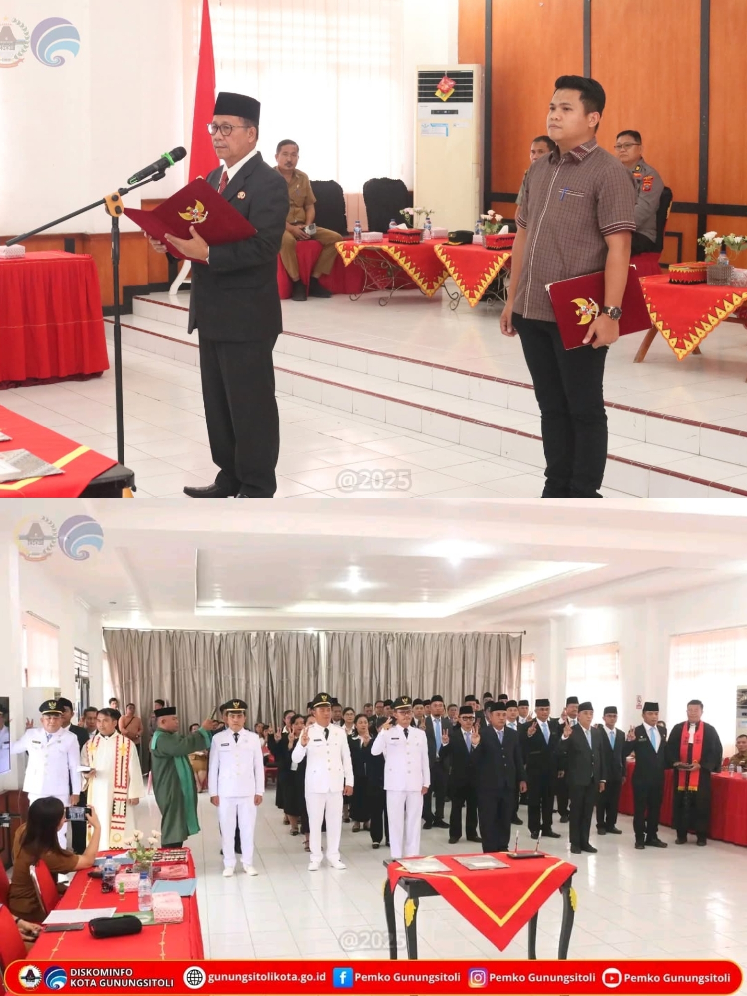 - Gunungsitoli, Sumut. OPSINEWS.COM - Pemerintah Kota Gunungsitoli melaksanakan upacara Pelantikan dan Pengambilan Sumpah/Janji Jabatan Pejabat Administrator dan Pengawas yang dipimpin langsung oleh Wakil Wali Kota Gunungsitoli, Martinus Lase, SH, di Ruang Rapat II Kantor Wali Kota Gunungsitoli, Senin (3/11/2025).