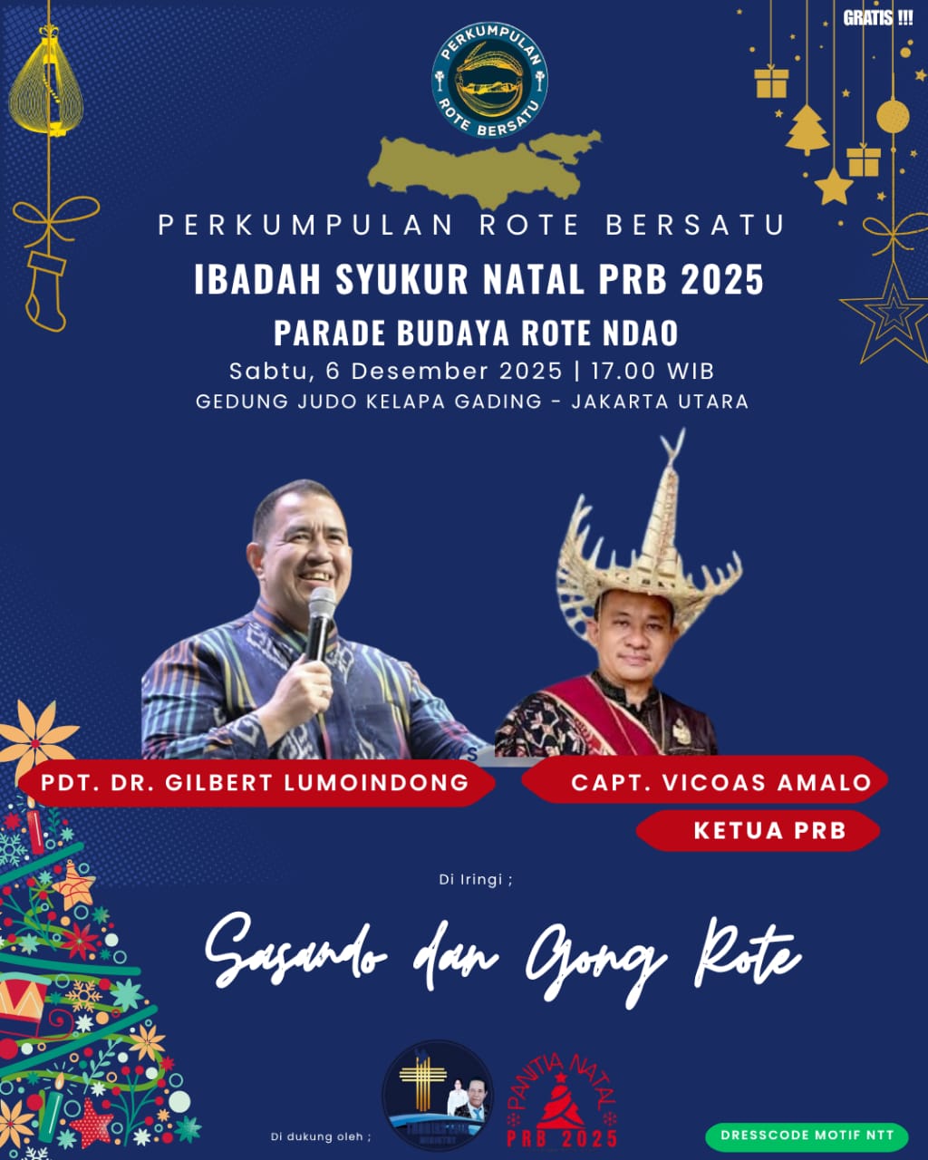 diaspora Rote. “Kami mengajak semua saudara-saudari, baik orang Rote maupun siapa saja yang mencintai budaya Rote, untuk bersama-sama merayakan Natal yang juga akan dimeriahkan