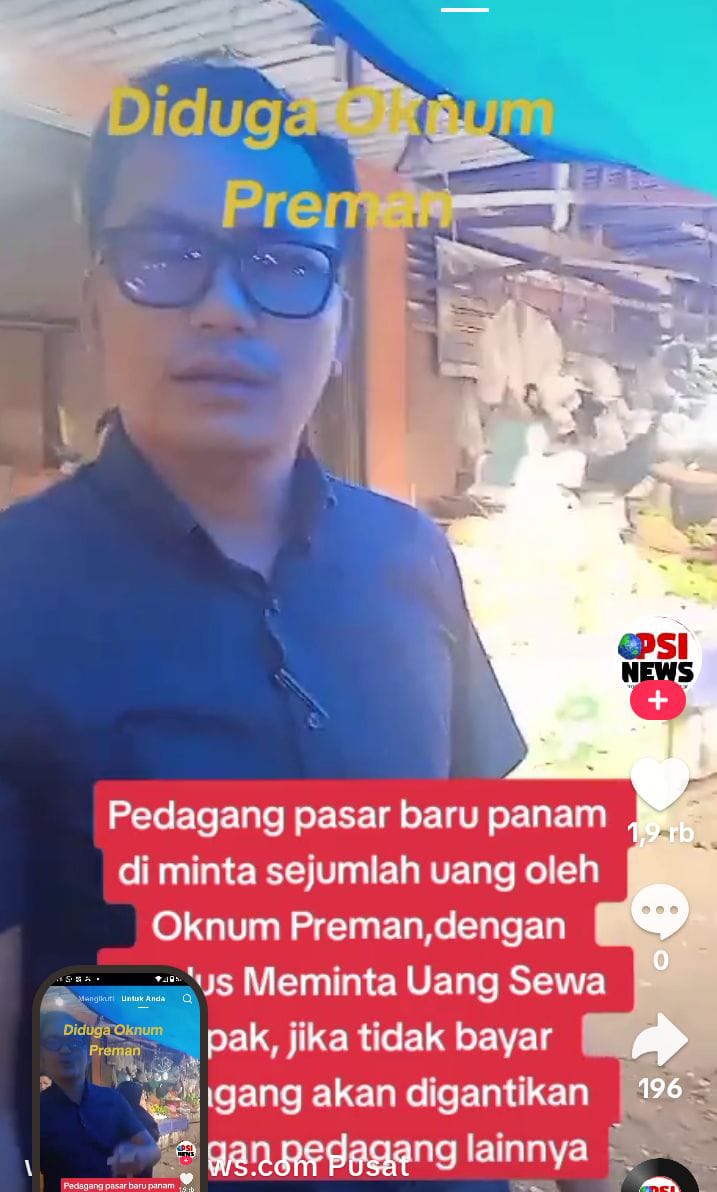 Wanita berusia (55 th) bernama Desmawati mengungkapkan sekitar bulan Desember 2023 Rio Rahman bersama kelompoknya membuat sekitar 30 meja dan diletakkannya di sepanjang lapak pedagang sayur pasar baru panam, Jika pedagang menolak membayar sewa meja itu maka pedagang diancam diusir dan digantinya dengan pedagang lain.
