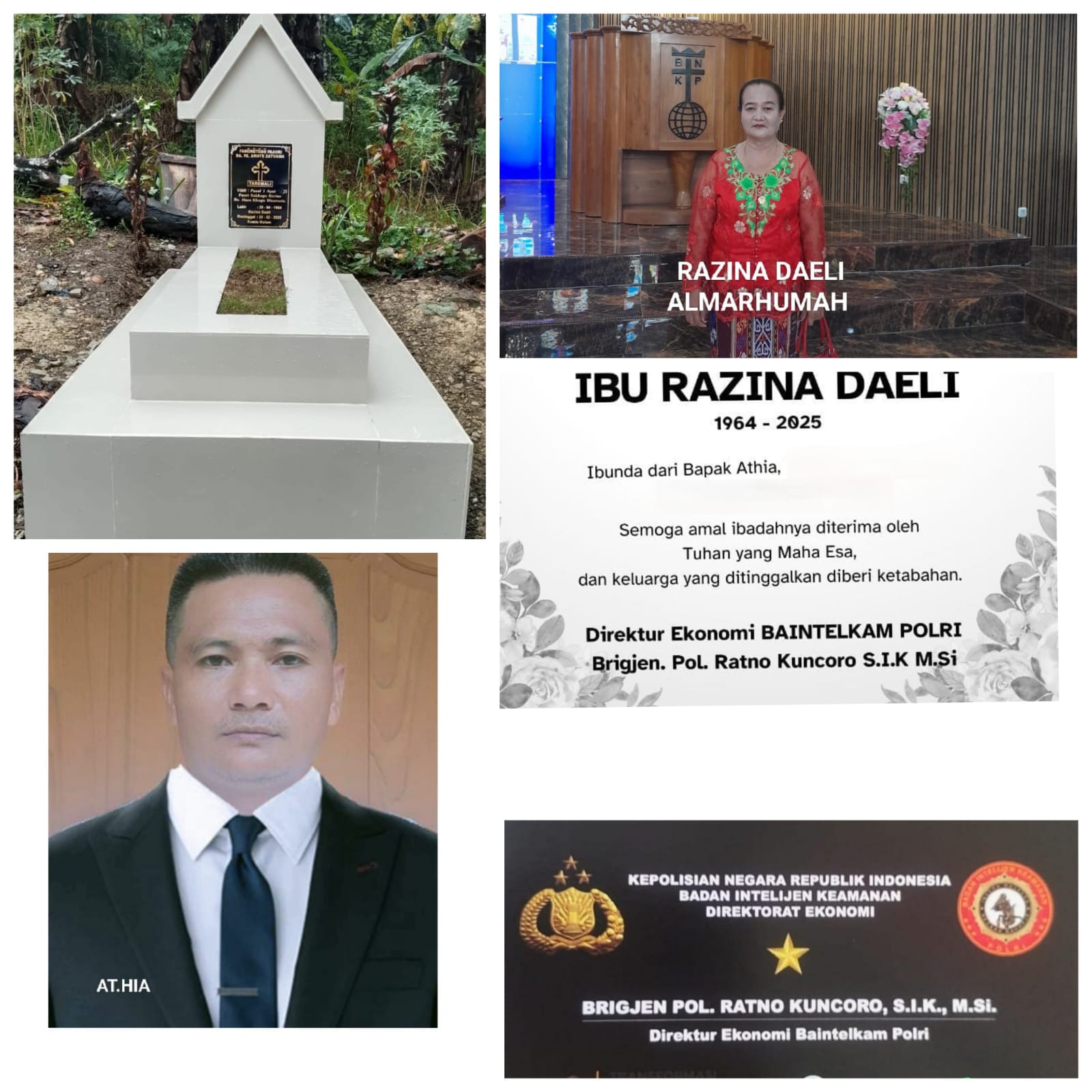 Keluarga besar Almarhumah Razina Daeli, ibunda tercinta dari tujuh bersaudara termasuk putra sulung Athia Jurnalis, menyampaikan duka cita mendalam sekaligus ucapan terima kasih yang sebesar-besarnya kepada seluruh pihak yang telah memberikan perhatian, dukungan, dan doa atas kepergian Almarhumah.