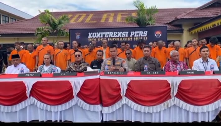 Inhu, OPSINEWSCOM.Kepolisian Resor Indragiri Hulu (Polres Inhu) berhasil mengungkap kasus besar peredaran narkotika dalam Operasi Antik 2025, sebuah operasi terpadu yang digelar di wilayah hukum Kabupaten Inhu. Sebanyak 63 tersangka, termasuk satu orang perempuan, diamankan dalam operasi yang digelar secara serentak oleh seluruh jajaran Polres dan Polsek di bawah naungan Polres Inhu. Dari para tersangka, polisi menyita sejumlah barang bukti berupa 511,82 gram sabu, 10,34 gram ganja, serta tiga butir pil ekstasi. Kapolres Inhu, AKBP Farian Siregar SIK MSi, dalam konferensi pers di Mapolres Inhu, Kamis (9/10/2025), menegaskan komitmennya untuk memerangi peredaran narkoba secara tegas dan berkelanjutan. “Siapa pun yang terlibat akan kami tindak tegas. Polres Inhu akan terus menggencarkan pengungkapan kasus narkoba demi melindungi masyarakat dari ancaman narkotika,” ujar AKBP Farian. Sebagai wujud transparansi, barang bukti yang berhasil disita dimusnahkan dengan disaksikan langsung oleh unsur Forum Koordinasi Pimpinan Daerah (Forkopimda), di antaranya Ketua Pengadilan Negeri, Kepala Kejaksaan Negeri, Kepala Dinas Kesehatan, Ketua LAM Inhu, dan Kepala Balai POM Kabupaten Inhu. Kapolres Inhu juga menyampaikan apresiasi kepada seluruh jajaran kepolisian yang telah bekerja keras selama operasi berlangsung. Berikut rincian jumlah tersangka dan laporan polisi (LP) berdasarkan satuan kerja, Peranap LP 8 jumlah tersangka 14, Lubuk Batu Jaya LP 6 jumlah tersangka 7, Kelayang LP 5 tersangka 6, Lirik LP 2 jumlah tersangka 2, Batang Cenaku LP 2 jumlah tersangka 3, Pasir Penyu LP 5 jumlah tersangka 5, Rengat Barat LP 4 jumlah tersangka 4, Seberida LP 5 jumlah tersangka 5 dan Satres narkoba polres Inhu LP 9 jumlah tersangka 19. Meski terdapat sedikit perbedaan antara jumlah laporan polisi dan jumlah tersangka, hal ini dimungkinkan karena adanya laporan ganda atau pengembangan kasus yang menghasilkan tersangka tambahan. Operasi Antik 2025 ini menjadi bukti nyata komitmen Polres Inhu dalam menciptakan lingkungan yang bersih dari penyalahgunaan narkoba. Polres memastikan operasi serupa akan terus dilakukan secara berkelanjutan sebagai bentuk perlindungan terhadap masyarakat.**